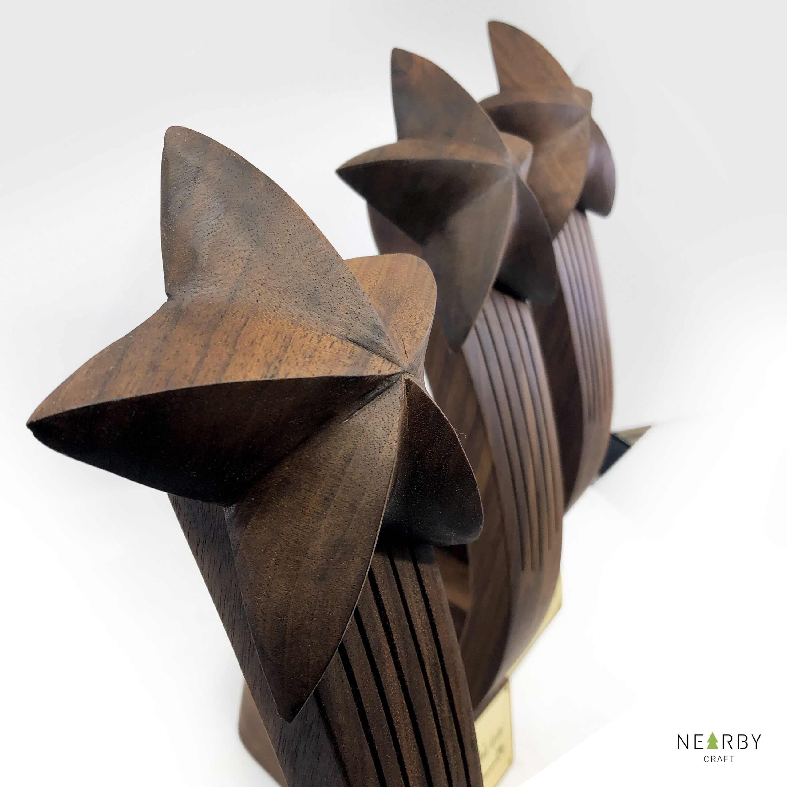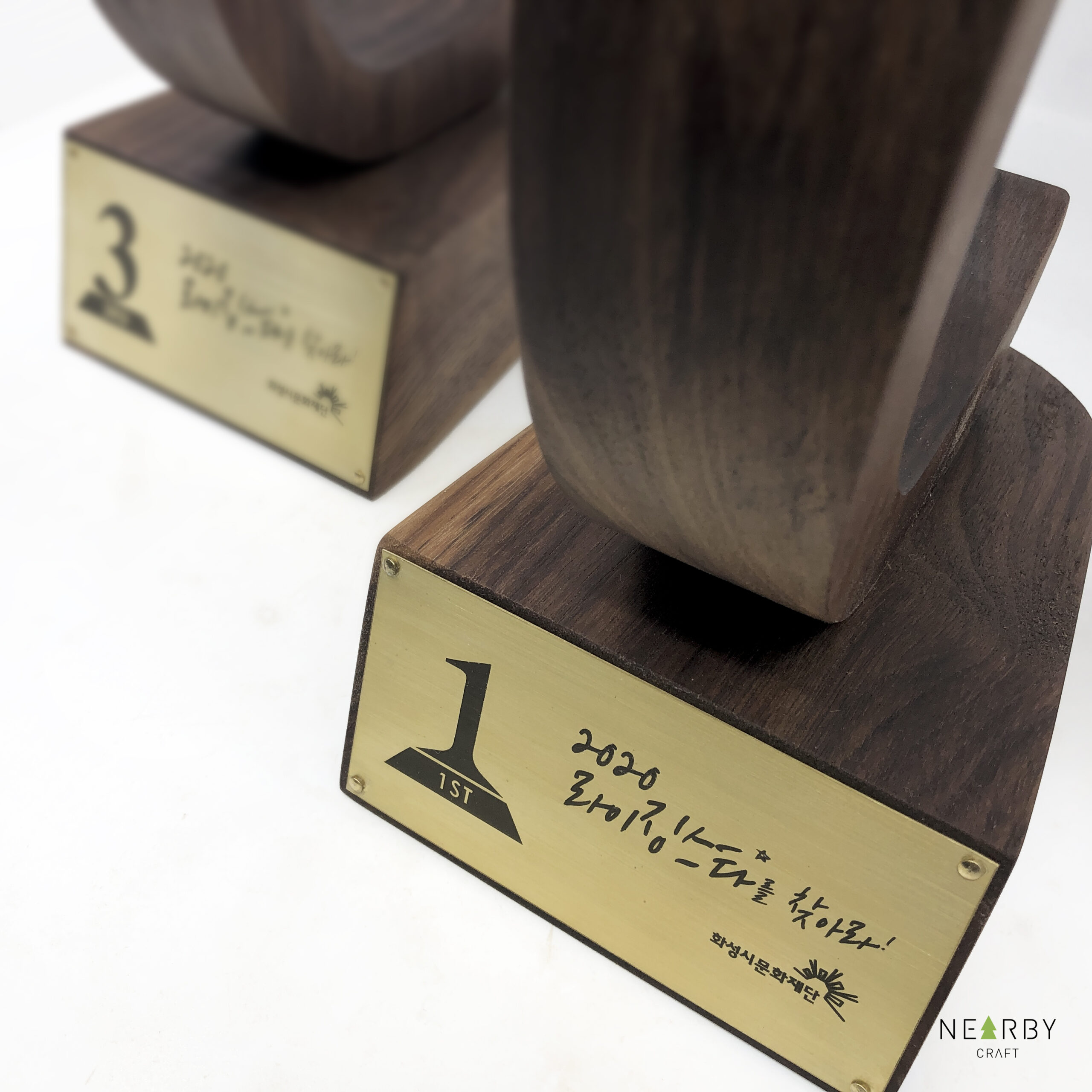 무대 위에서 가장 빛나는 순간, 새로운 음악적 별의 탄생을 축하하는 ‘뮤지션 어워드 라이징스타’ 트로피입니다. 월넛의 깊고 풍부한 색감이 음악의 깊이를 담아내며, 세로로 흐르는 라인은 현악기의 줄을 연상시킵니다. 상단의 별 장식이 라이징스타라는 타이틀을 강조하고, 유려한 곡선이 음악의 흐름과 리듬감을 자연스럽게 표현합니다. 차가운 금속 대신 따뜻한 나무를 선택한 것은 아티스트의 음악이 사람들의 마음속에 깊이 뿌리내리길 바라는 니어바이의 진심 어린 응원이 담겨 있습니다. 시간이 흐를수록 깊어지는 원목의 색감처럼, 라이징스타의 음악적 여정이 더욱 깊어지길 기원하는 예술적인 오브제입니다.