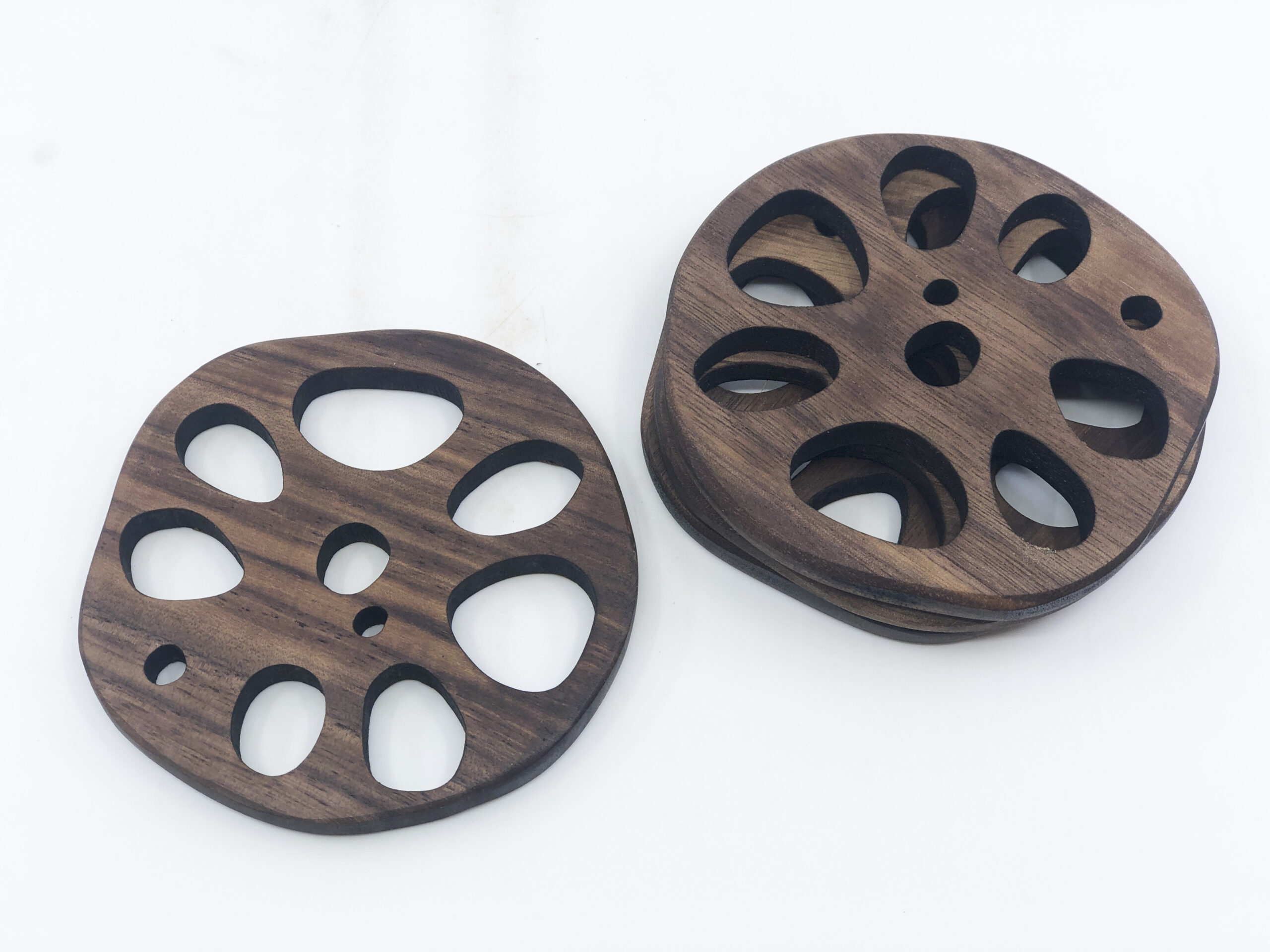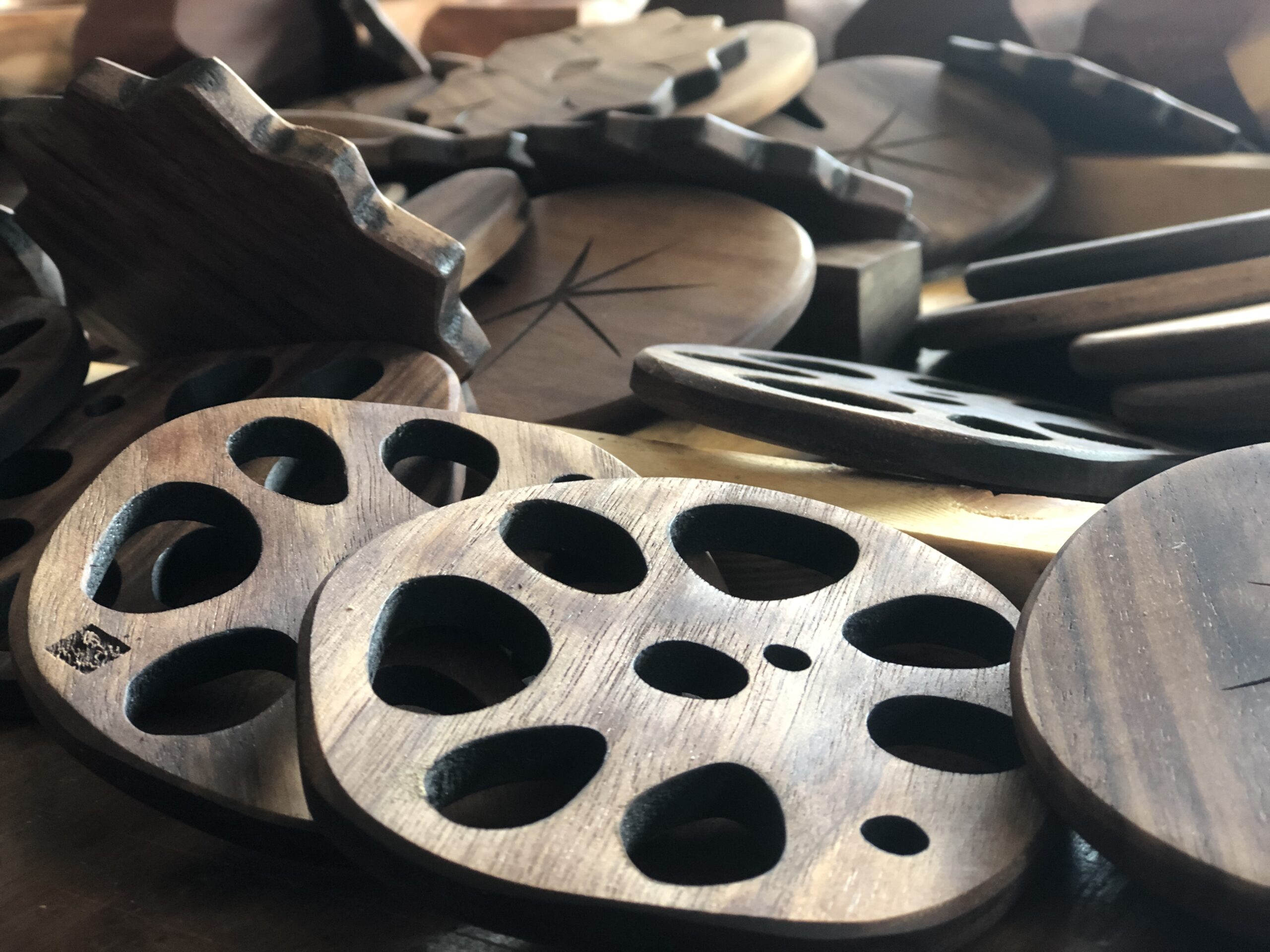 원목 화병은 단순한 선과 안정적인 비례로 구성해, 꽃 한 송이와도 조용히 어우러지도록 디자인했습니다. 투명한 유리관과 단단한 원목의 대비는 물과 나무, 가벼움과 무게감이 공존하는 세미원의 풍경을 닮아 있습니다.연꽃 모티브의 원목 오브제는 세미원의 상징을 추상적으로 풀어낸 형태로, 반복되는 곡선과 절제된 구조 안에 자연의 리듬을 담았습니다. 겹겹이 쌓인 나뭇결과 정교한 가공은, 시간이 만들어낸 결과 인위적 손길이 만나는 지점을 보여줍니다.