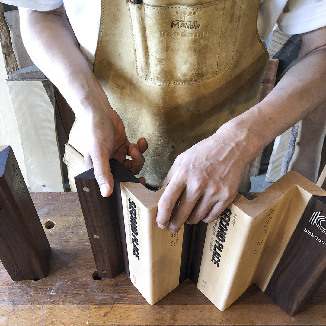 메이플과 월넛, 서로 다른 성질의 두 원목을 결합해 선수와 서포터의 관계를 조형적으로 표현한 트로피입니다.