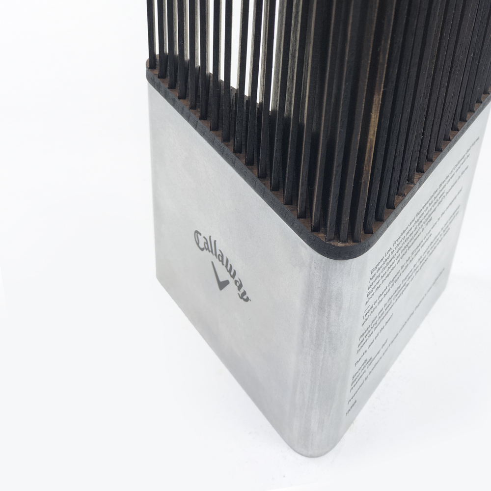 대한민국 골프 산업을 이끌어온 캘러웨이 대표님의 33년 헌신과 새로운 출발을 응원하며 제작한 프리미엄 감사패입니다. 캘러웨이의 상징인 ‘V’ 마크를 현대적으로 재해석한 디자인이 특징으로, 정교하게 와이어 컷팅된 알루미늄과 33년을 상징하는 33개의 월넛 사잇목이 만나 독보적인 세련미를 자아냅니다. 시선의 흐름에 따라 나무 사이로 스며드는 빛의 물결은 대표님이 걸어온 아름다운 역사를 대변하며, 금속과 원목의 대비는 기업가 정신의 견고함과 따뜻함을 동시에 담아냈습니다. 단순한 기념패를 넘어 공간을 압도하는 유니크한 예술적 품격을 전합니다.