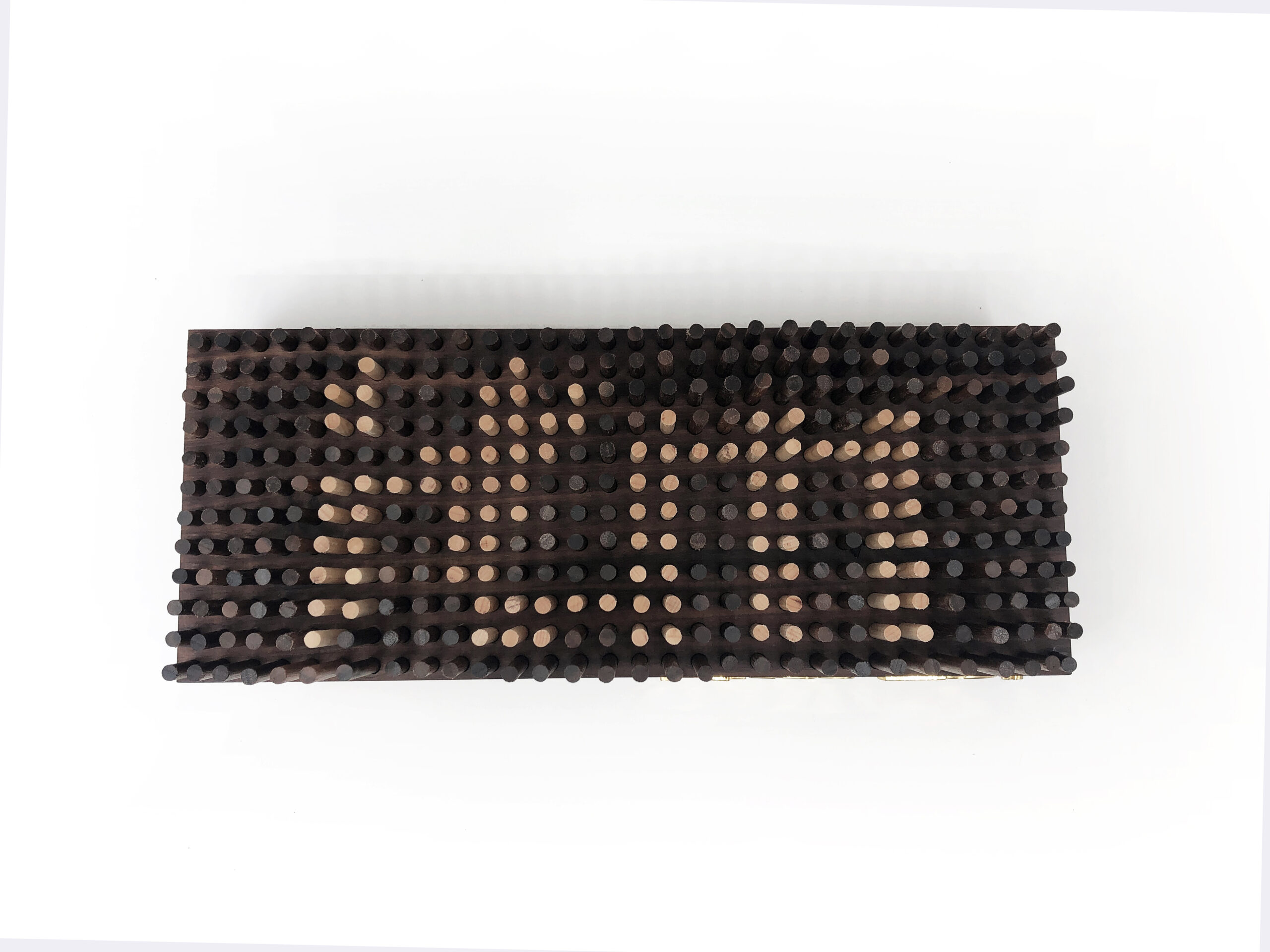 5mm 굵기의 미세한 원기둥 도트들을 촘촘하게 배열하고, 각 도트의 높낮이를 다르게 해 ITM이 걸어온 시간과 사업 성과를 입체적인 도심의 실루엣처럼 표현했어요. 월넛과 메이플 원목이 주는 자연스러운 결 위에 ‘ITM 30th’ 타이틀을 순금으로 제작해 마무리함으로써 30주년의 고귀한 가치를 더했습니다. 나무의 물성을 극대화한 정교한 수작업을 통해, 건축의 기본인 ‘공간과 시간’의 의미를 니어바이만의 감각으로 완성하였습니다.