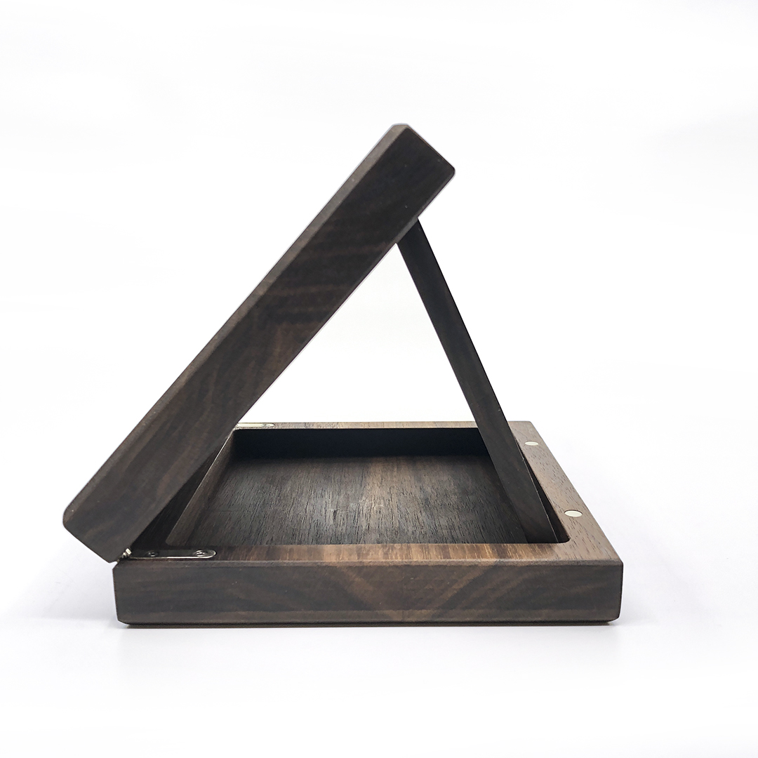 단단한 월넛 원목으로 제작된 이 메달 케이스는, 열었을 때 자연스럽게 삼각 구조로 고정되어 메달이 가장 안정적인 각도로 드러나도록 설계되었습니다. 뚜껑과 받침이 경첩으로 이어진 구조는 적당한 각도로 열려 메달을 디스플레이할 수 있으며, 사용하지 않을 때에도 하나의 오브제처럼 공간에 놓일 수 있도록 디자인되었습니다. 내부에는 메달을 안정적으로 고정할 수 있는 홈을 더해, 보관과 전시의 기능을 동시에 충족합니다.